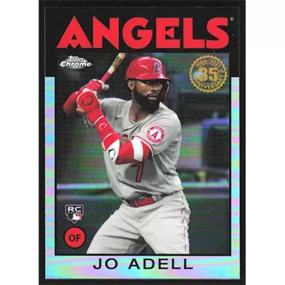 This is a 2021 Topps Chrome '86 Jo Adell baseball card. The card is #86BC-11 and pictures show condition. Team(s): Los Angeles Angels Rookie Card (RC)