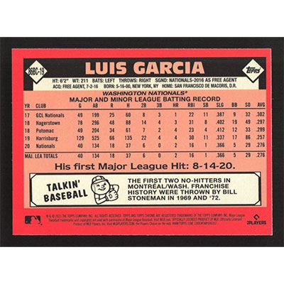 This is a 2021 Topps Chrome '86 Luis Garcia baseball card. The card is #86BC-19 and pictures show condition. Team(s): Washington Nationals Rookie Card (RC)
