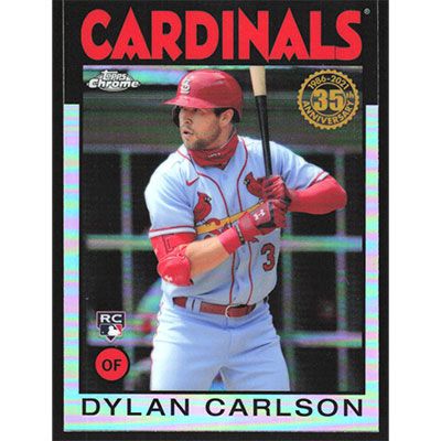 This is a 2021 Topps Chrome '86 Dylan Carlson baseball card. The card is #86BC-6 and pictures show condition. Team(s): St. Louis Cardinals Rookie Card (RC)