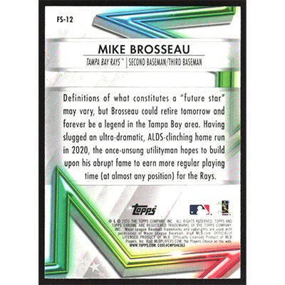 This is a 2021 Topps Chrome Future Stars Mike Brosseau baseball card. The card is #FS-12 and pictures show condition.