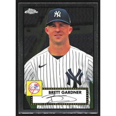 This is a 2021 Topps Chrome Platinum Anniversary Brett Gardner baseball card. The card is #467 and pictures show condition.