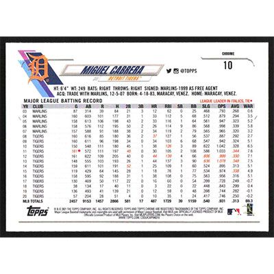 This is a 2021 Topps Chrome Prism Refractors Miguel Cabrera baseball card. The card is #10 and pictures show condition.