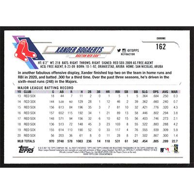 This is a 2021 Topps Chrome Sepia Refractors Xander Bogaerts baseball card. The card is #162 and pictures show condition.