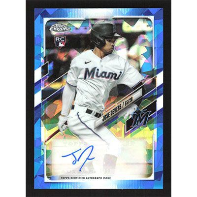 This is a 2021 Topps Chrome Update Sapphire Rookie Autographs Jose Devers autographed baseball card. This card has been signed, in blue, by Jose Devers, and is certified authentic by Topps. The card is #RA-JDE and pictures show condition.