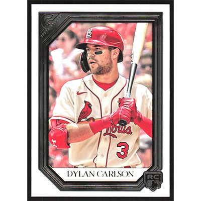 This is a 2021 Topps Gallery Dylan Carlson baseball card. The card is #197 and pictures show condition. Team(s): St. Louis Cardinals Rookie Card (RC)
