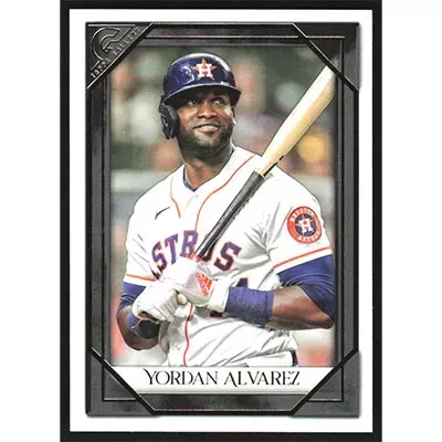 This is a 2021 Topps Gallery Yordan Alvarez baseball card. The card is #8 and pictures show condition.
