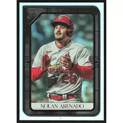 This is a 2021 Topps Gallery Rainbow Foil Nolan Arenado baseball card. The card is #198 and pictures show condition.
