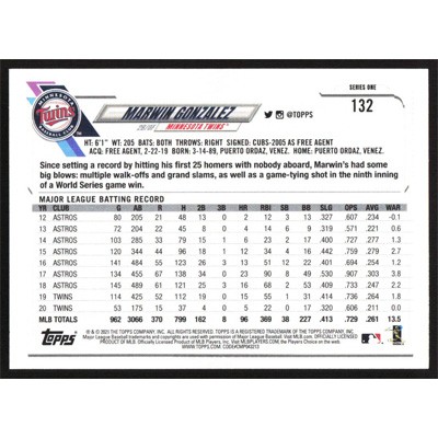 This is a 2021 Topps Gold Foil Marwin Gonzalez baseball card. The card is #132 and pictures show condition.