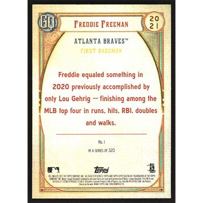This is a 2021 Topps Gypsy Queen Freddie Freeman baseball card. The card is #1 and pictures show condition.
