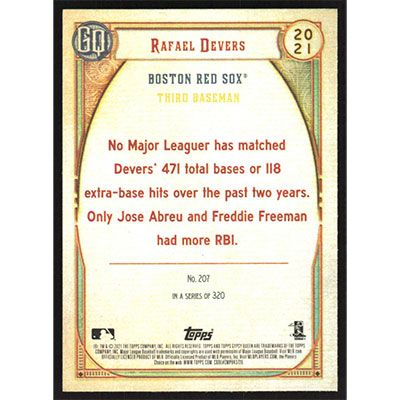 This is a 2021 Topps Gypsy Queen Rafael Devers baseball card. The card is #207 and pictures show condition.