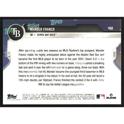 This is a 2021 Topps Now Wander Franco baseball card. The card is #402 and pictures show condition.