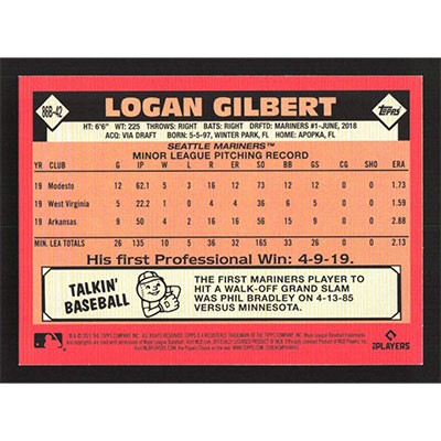 This is a 2021 Topps Update '86 Logan Gilbert baseball card. The card is #86B-42 and pictures show condition. Team(s): Seattle Mariners Rookie Card (RC)