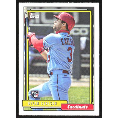 This is a 2021 Topps Update '92 Redux Dylan Carlson baseball card. The card is #T92-45 and pictures show condition. Team(s): St. Louis Cardinals Rookie Card (RC)