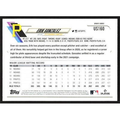 This is a 2021 Topps Update Erik Gonzalez baseball card. The card is #US160 and pictures show condition.