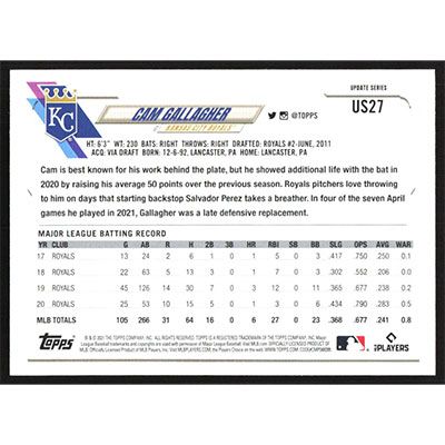 This is a 2021 Topps Update Cam Gallagher baseball card. The card is #US27 and pictures show condition.