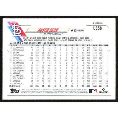 This is a 2021 Topps Update Austin Dean baseball card. The card is #US58 and pictures show condition.