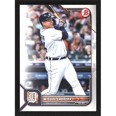 This is a 2022 Bowman Miguel Cabrera baseball card. The card is #50 and pictures show condition.