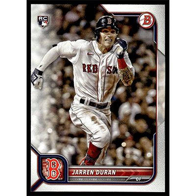 This is a 2022 Bowman Jarren Duran baseball card. The card is #84 and pictures show condition.