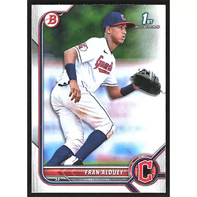 This is a 2022 Bowman Prospects Fran Alduey baseball card. The card is #BP-39 and pictures show condition.