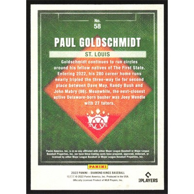 This is a 2022 Diamond Kings Artist Proof Blue Paul Goldschmidt baseball card. The card is #58 and pictures show condition.