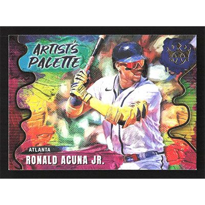 This is a 2022 Diamond Kings Artist's Palette Ronald Acuña Jr. baseball card. The card is #AP-14 and pictures show condition.