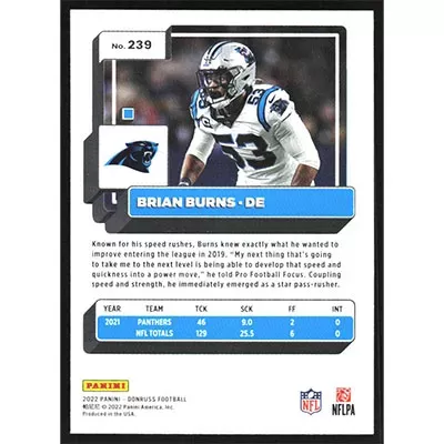 This is a 2022 Donruss Brian Burns football card. The card is #239 and pictures show condition.