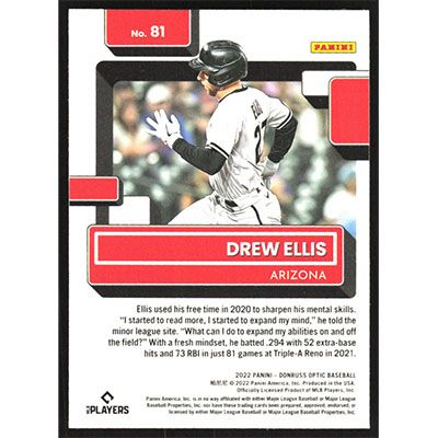This is a 2022 Donruss Optic Drew Ellis Rated Rookie baseball card. The card is #81 and pictures show condition. Team(s): Arizona Diamondbacks Rookie Card (RC)