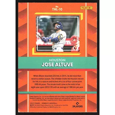This is a 2022 Donruss The Hit List Pink Fireworks Jose Altuve baseball card. The card is #THL-10 and pictures show condition.