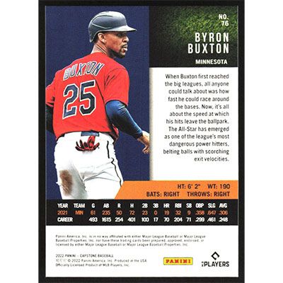 This is a 2022 Panini Capstone Byron Buxton baseball card. The card is #76 and pictures show condition.