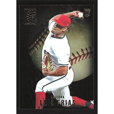 This is a 2022 Panini Capstone Gold Luis Frias baseball card. The card is #141 and pictures show condition. Team(s): Arizona Diamondbacks Rookie Card (RC)