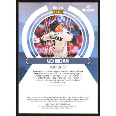 This is a 2022 Panini Capstone Summit Alex Bregman baseball card. The card is #S-9 and pictures show condition.