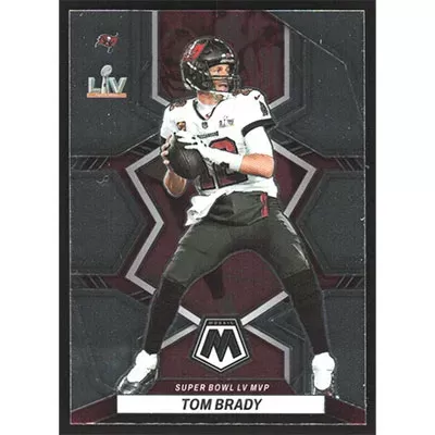 This is a 2022 Panini Mosaic Tom Brady Super Bowl LV MVP football card. The card is #291 and pictures show condition.
