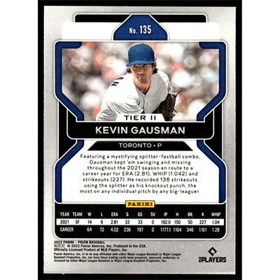 This is a 2022 Panini Prizm Kevin Gausman baseball card. The card is #135 and pictures show condition.