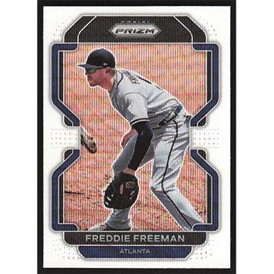 This is a 2022 Panini Prizm White Wave Freddie Freeman baseball card. The card is #29 and pictures show condition.