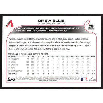 This is a 2022 Topps Drew Ellis baseball card. The card is #298 and pictures show condition.