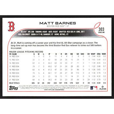 This is a 2022 Topps Matt Barnes baseball card. The card is #303 and pictures show condition.