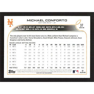 This is a 2022 Topps Michael Conforto baseball card. The card is #37 and pictures show condition.