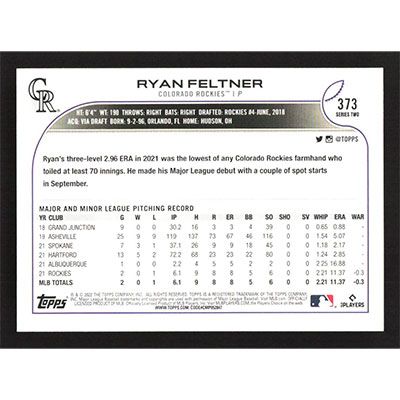 This is a 2022 Topps Ryan Feltner baseball card. The card is #373 and pictures show condition.