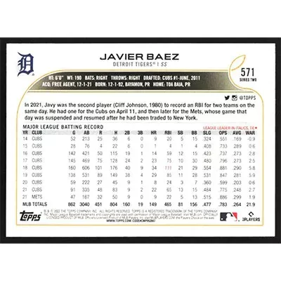 This is a 2022 Topps Javier Baez baseball card. The card is #571 and pictures show condition.