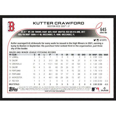 This is a 2022 Topps Kutter Crawford baseball card. The card is #645 and pictures show condition.