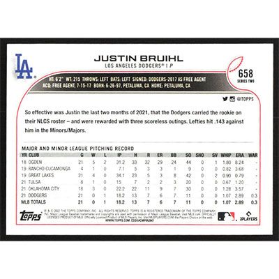 This is a 2022 Topps Justin Bruihl baseball card. The card is #658 and pictures show condition.