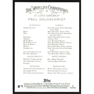 This is a 2022 Topps Allen & Ginter Paul Goldschmidt baseball card. The card is #25 and pictures show condition.