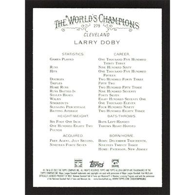 This is a 2022 Topps Allen & Ginter Larry Doby baseball card. The card is #279 and pictures show condition.
