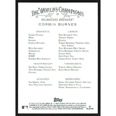 This is a 2022 Topps Allen & Ginter Corbin Burnes baseball card. The card is #31 and pictures show condition.