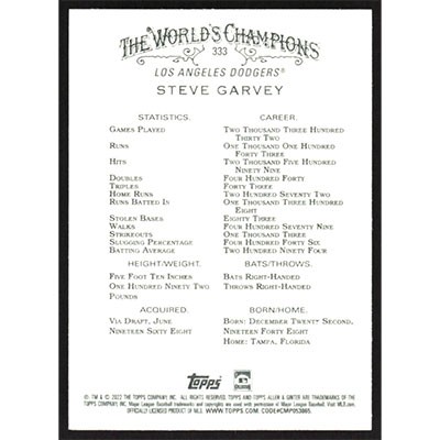 This is a 2022 Topps Allen & Ginter Steve Garvey short print baseball card. The card is #333 and pictures show condition.