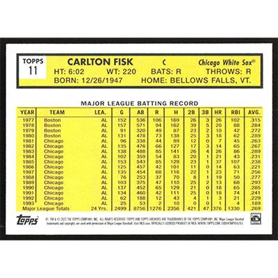 This is a 2022 Topps Archives Carlton Fisk baseball card. The card is #11 and pictures show condition.
