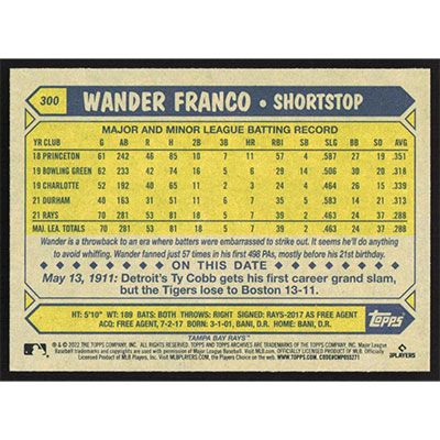 This is a 2022 Topps Archives Wander Franco baseball card. The card is #300 and pictures show condition.