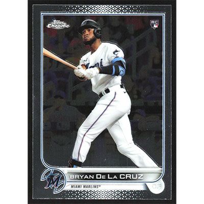 This is a 2022 Topps Chrome Bryan De La Cruz baseball card. The card is #216 and pictures show condition.