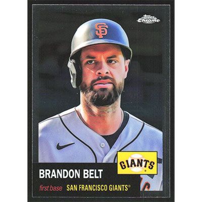 This is a 2022 Topps Chrome Platinum Anniversary Brandon Belt baseball card. The card is #369 and pictures show condition.