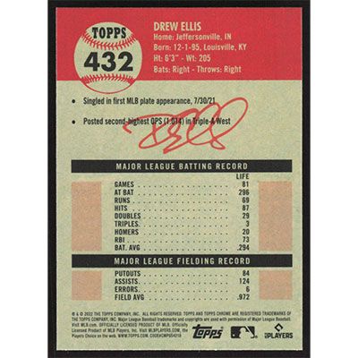 This is a 2022 Topps Chrome Platinum Anniversary Drew Ellis baseball card. The card is #432 and pictures show condition. Team(s): Arizona Diamondbacks Rookie Card (RC)